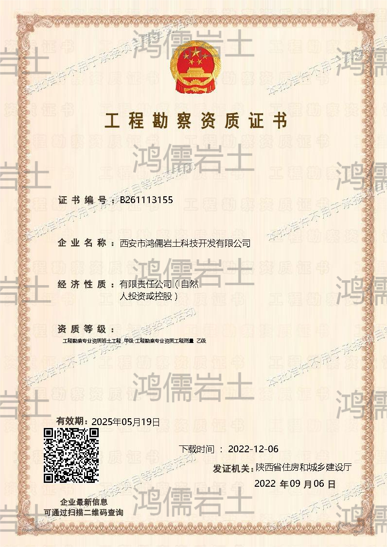 鴻儒勘測設計有限公司成立于1997年,注冊資金1212萬元。具有工程勘察專業類甲級資質、環保工程專業承包三級資質,地質災害治理工程勘查、設計及施工甲級資質,地質災害評估丙級資質,通過了GB/T 19001-2016/ISO 9001:2015質量管理體系認證。